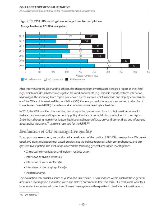 The average time spent on investigating an officer involved shooting has declined from 417 days in 2007 to 264 days in 2013.