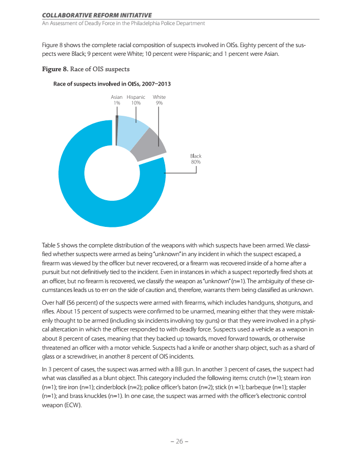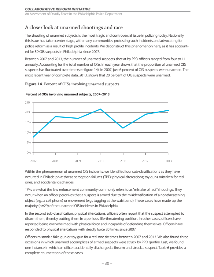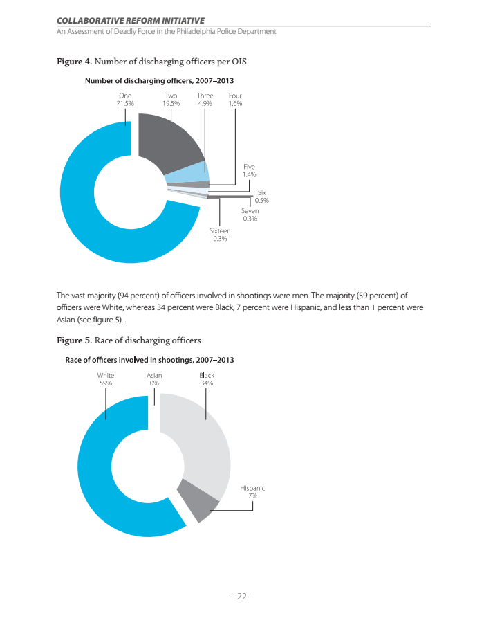 The DOJ's Philadelphia investigation, which examined nearly 400 deadly force incidents between 2007 and 2013, provides a rare close-up of the patterns of officer-involved shootings. The report follows on the heels of another damning reportthe DOJ published on the city of Ferguson, where federal investigators found systematic racial discrimination among public officials and police.