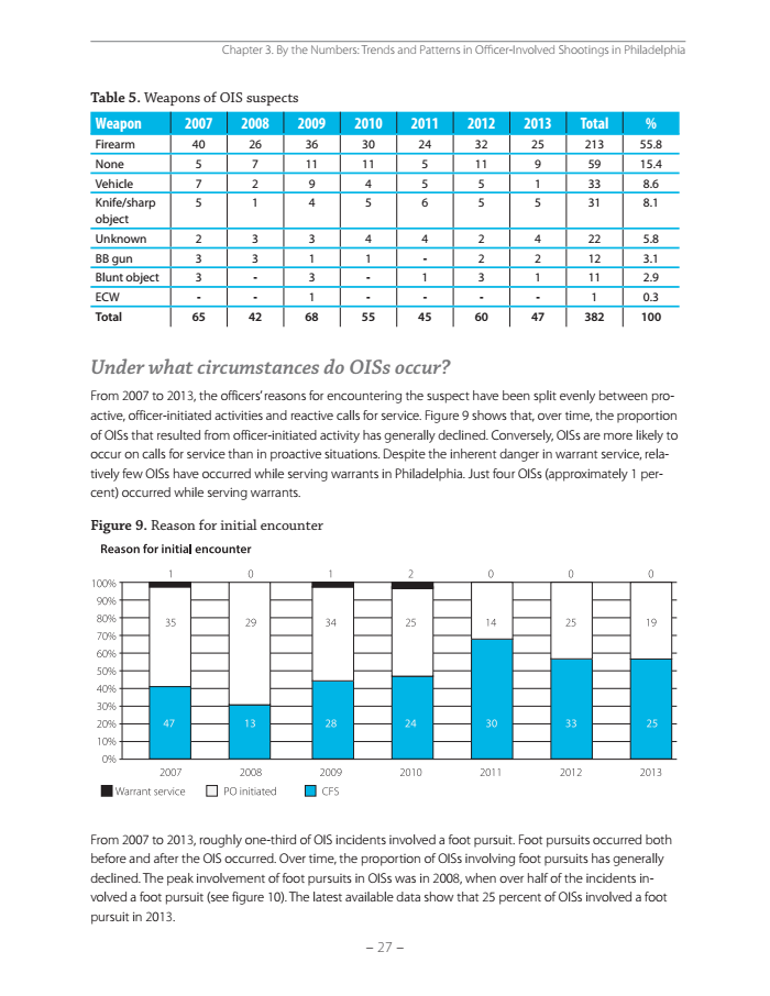 Officers initiated the encounter in 43 percent of officer-involved shootings in 2013, down from nearly 60 percent in 2007 and nearly 70 percent in 2008.