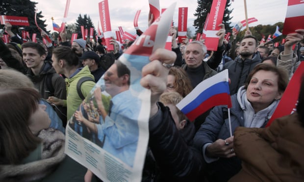 Dozens were arrested in Putin’s hometown of St Petersburg, Russia’s second biggest city. One woman had her leg broken when riot police dispersed hundreds of protesters chanting “Putin is a thief!” in the centre of the city, according to Russian media. Blood could be seen pouring down the head of another woman detained by police in footage posted to social media.