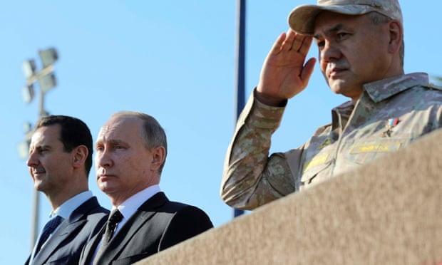 “Friends, the motherland is waiting for you,” Putin told the Russian air force detachment based at the Khmeimim airbase during his visit on Monday morning. “You are coming back home with victory.”